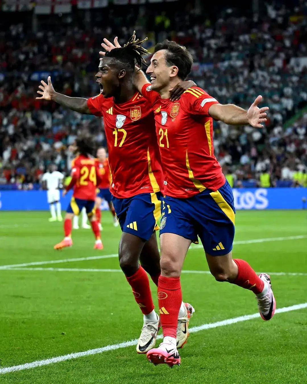 眼看时间慢慢流逝又将会拖入加时,这时候神兵天降,第86分钟奥亚萨瓦尔中路高速前插倒地的抢射洞穿球门实现绝杀,最后时刻没有奇迹出现,随着裁判一声哨响比赛正式结束,斗牛士军团全队激情庆祝,反观三狮军团球员黯然神伤,他们还是无法创造历史夺得首座欧洲杯。西班牙2-1力克英格兰,以七连胜的战绩夺得冠军,这也是队史的第四座欧洲杯,同时他们超越德国成为首支四冠王。