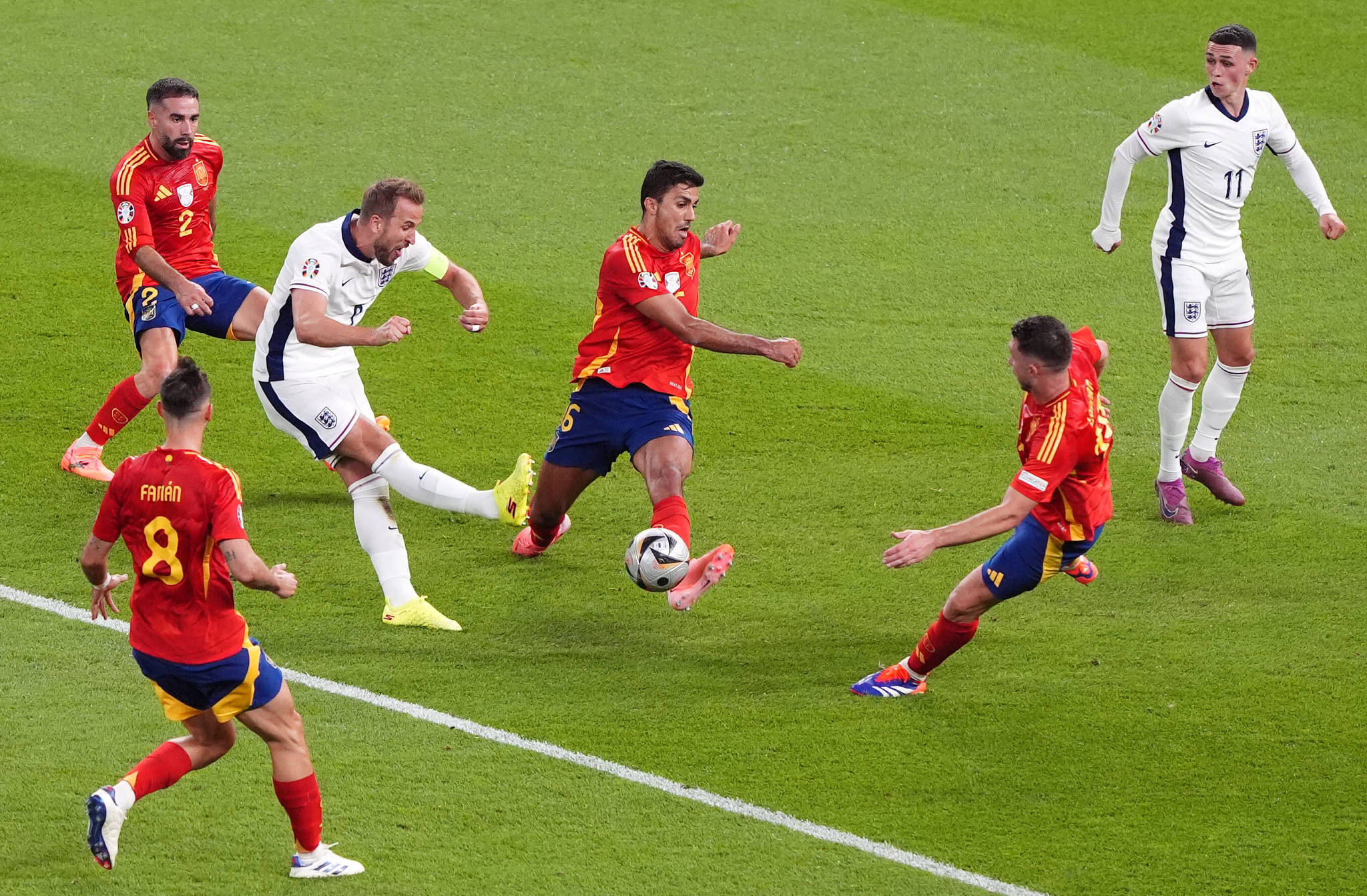 已经是欧洲杯淘汰赛进球纪录保持者的凯恩,只差1球,就能独享金靴。遗憾的是,这一切都没能发生,凯恩在决赛中的任务,不是进球,而是兑子,他把大半精力,放在了和西班牙后卫们缠斗上,压根连起脚的机会都没捞到。