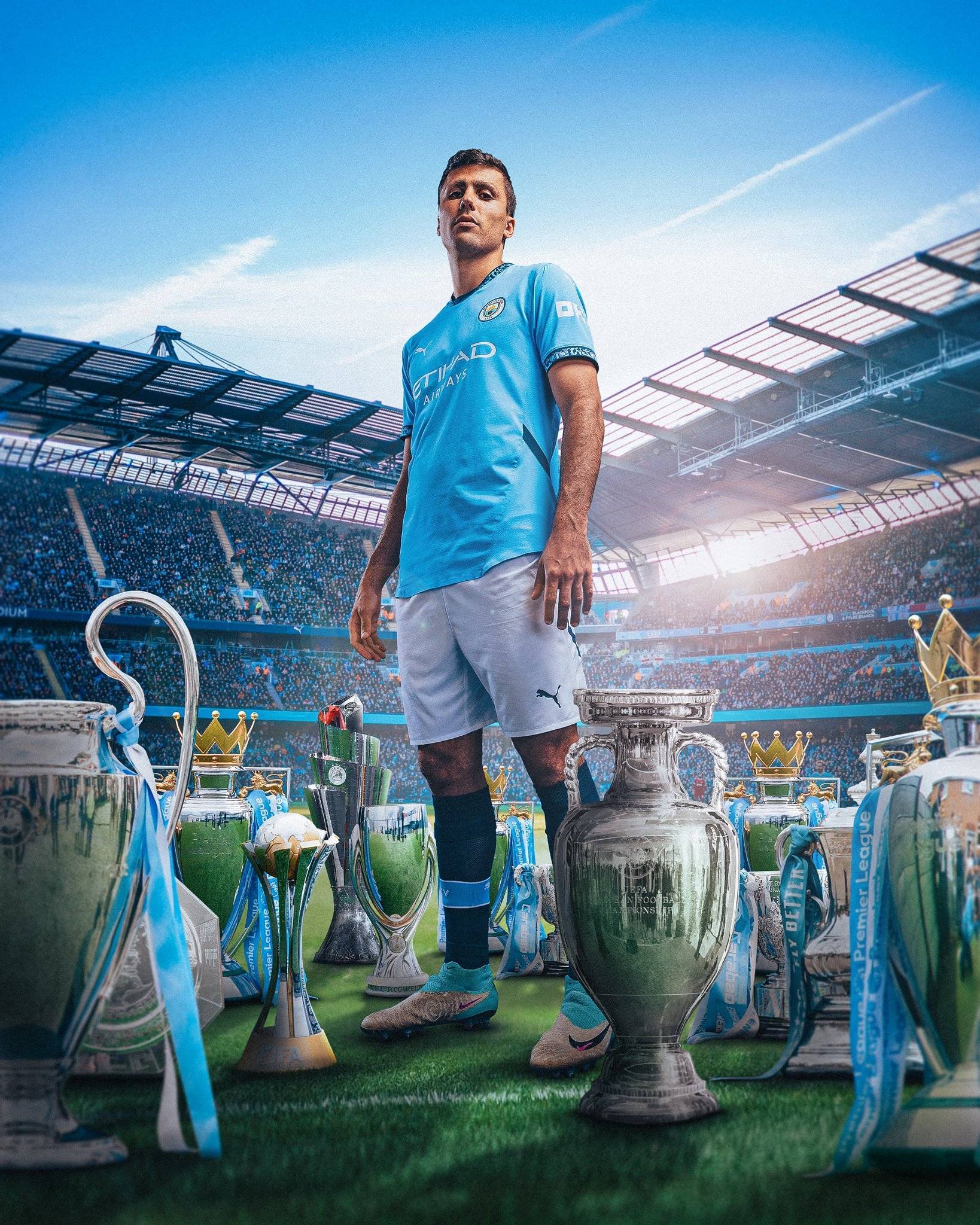罗德里所在的俱乐部曼城晒出罗德里所获的冠军:欧洲杯冠军、欧冠冠军、4座英超冠军……