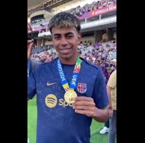 佩德里、费兰-托雷斯、亚马尔、奥尔莫和费尔明在今夏随西班牙赢得欧洲杯,而库巴西、埃里克-加西亚和费尔明在不久前又随西班牙国奥赢得奥运冠军。他们也在赛前佩戴金牌,向现场球迷进行了展示。