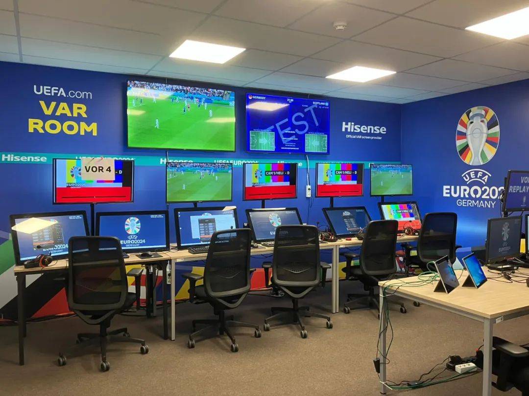 也就是说,海信将在欧洲杯期间,为莱比锡VAR裁判总部提供显示技术支持,协助裁判做出更精准的判断。