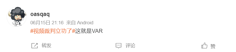 一位网友评论:高科技的价值减少了无谓的纠纷。“在等待VAR裁判结果时,瑞士球员们都在安静等待复核结果。之前这种情况都是一排球员冲到边裁身边理论。”