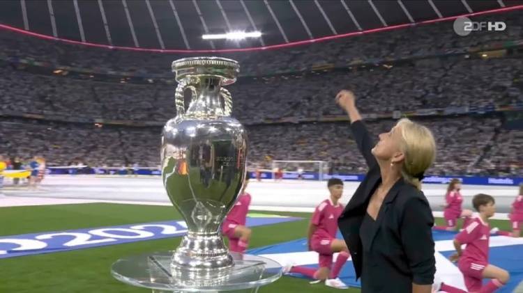 欧洲杯揭幕战德国vs苏格兰,开幕式上球场的大屏幕播放了一段视频向足球皇帝贝肯鲍尔致敬。贝肯鲍尔遗孀海蒂在开幕式上捧着德劳内杯进入慕尼黑足球场。她走入球场后,挥手向天堂致意,这一幕感动了无数人。海蒂在这次颁奖典礼上解释道:“说实话,这是我在很短的时间内想到的一个自发的举动。我觉得他就在那里,所以我跟他打了个招呼。”