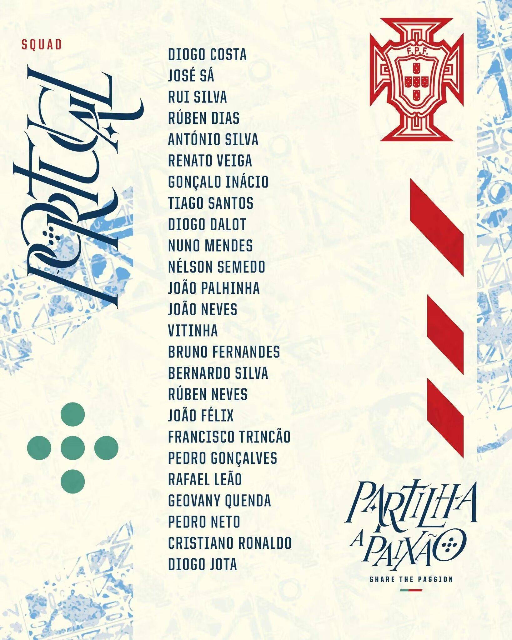 附葡萄牙最新大名单: